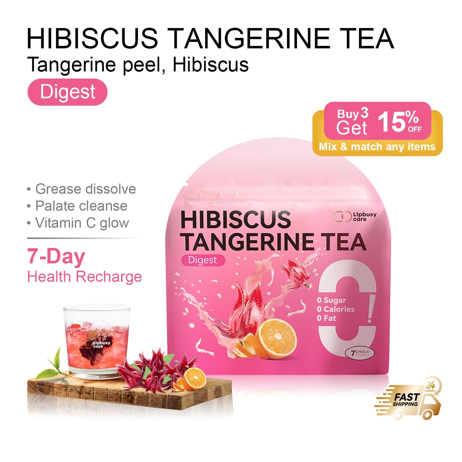 Lipbusycare Hibiscus Tangerine Tea Bag – Caffeine-Free & Refreshing Tea Bags