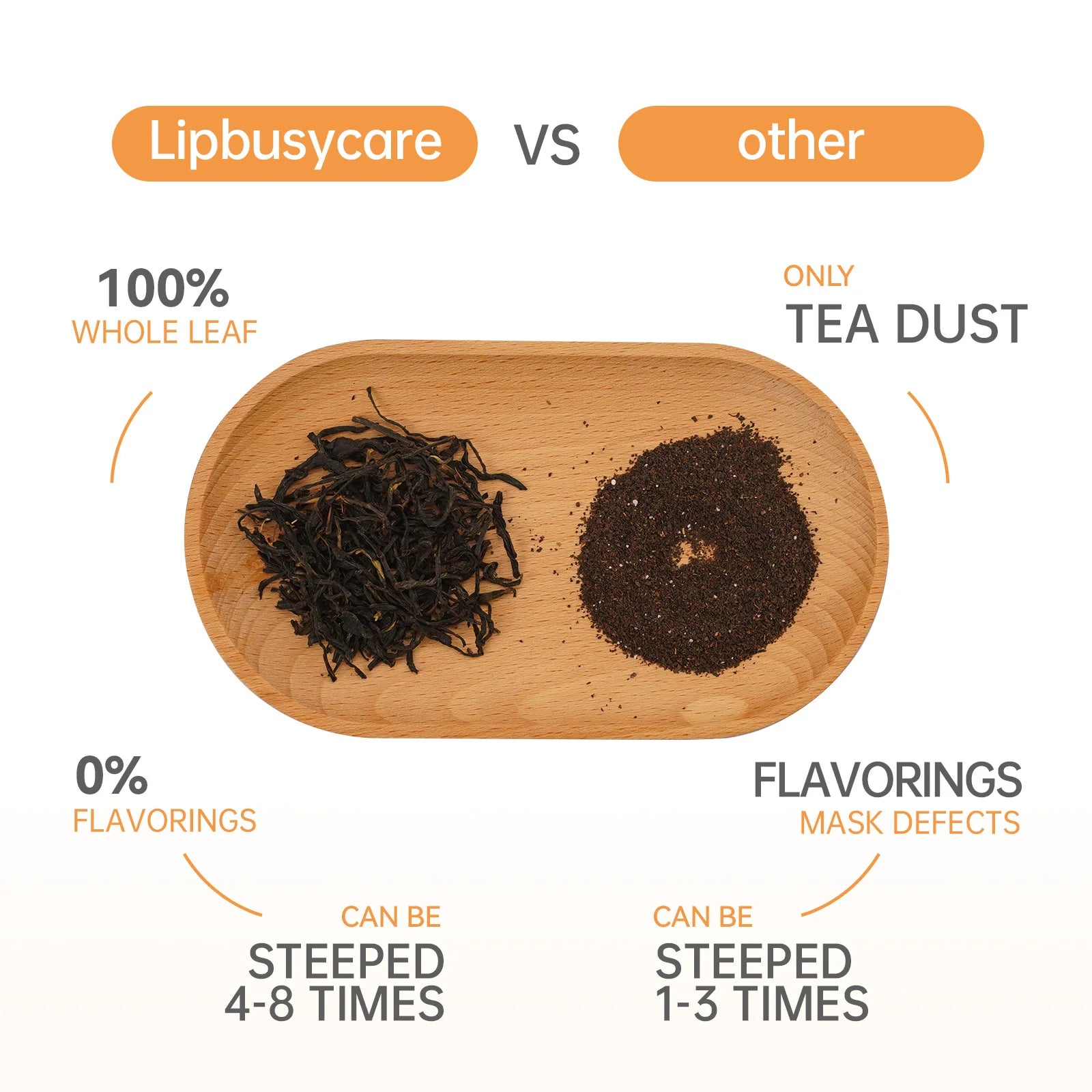 Our tea leaves, sourced from organic gardens at an altitude of 2000 meters and 25°N latitude, offer an enhanced flavor profile. To ensure they are both foam-resistant and delicious, we use 100% premium whole leaves in our teabags. Specialized high-purity production lines and freshness-sealing packaging technology guarantee no impurities or off-flavors throughout production and transportation. Many consumers have reported that even after brewing Lipbusycare teabags for the eighth time, they still maintain a consistent flavor and pleasant aroma.