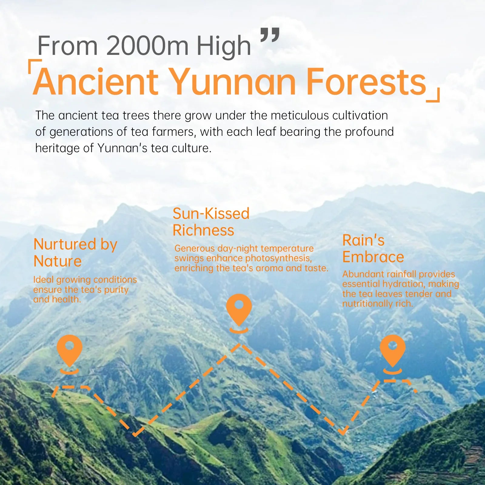 Adding fragrances to tea might enhance the aroma temporarily, but long-term use of artificial fragrances can be harmful to your health. Our tea leaves are sourced from organic gardens at an altitude of 2000 meters and 25°N latitude, where the natural environment produces tea that is naturally flavorful. Because of this exceptional quality, our tea does not require any added fragrances, allowing you to enjoy the pure, rich taste of our tea.